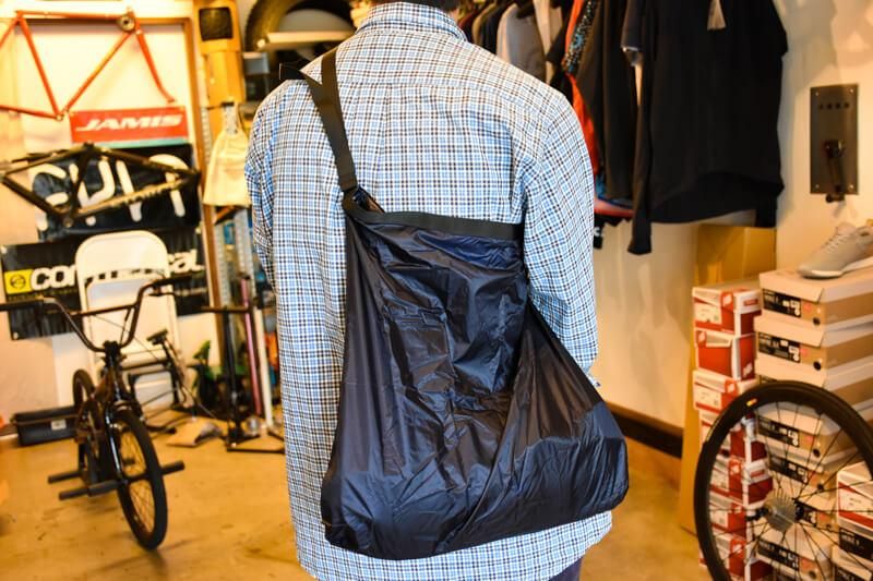 出先で買い物袋として使ったり、普段からバッグとして使っていただいても勿論OK。また、ロールアップタイプで防水スタッフサックとして使用することも可能。これ一つで色んな使い方ができる頼もしいやつですよ。